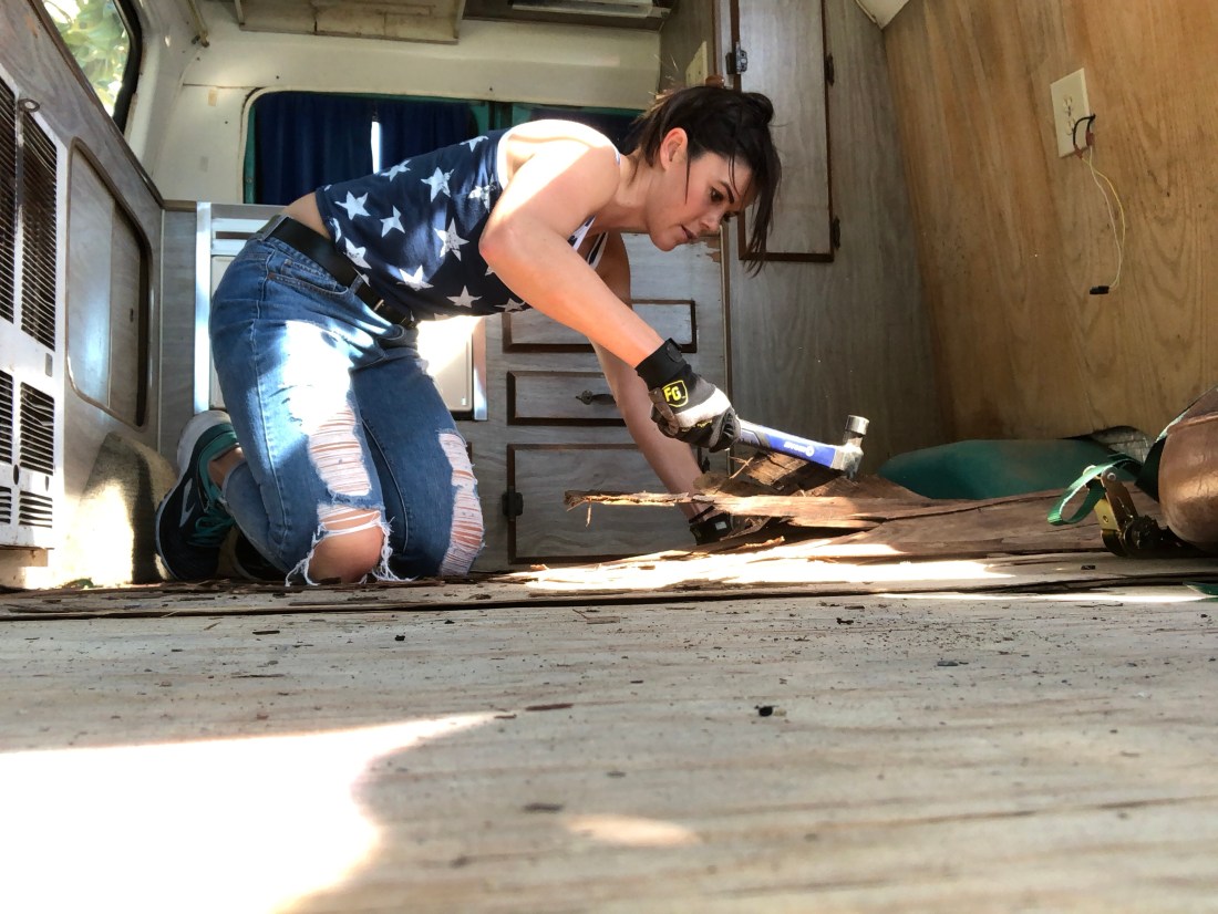 Pancho is full of mysteries… After researching some ‘do it yourself’ YouTube videos, I felt full of ‘internet knowledge confidence’, deciding to roll up my sleeves and surprise J by removing the old carpet from the van floor.