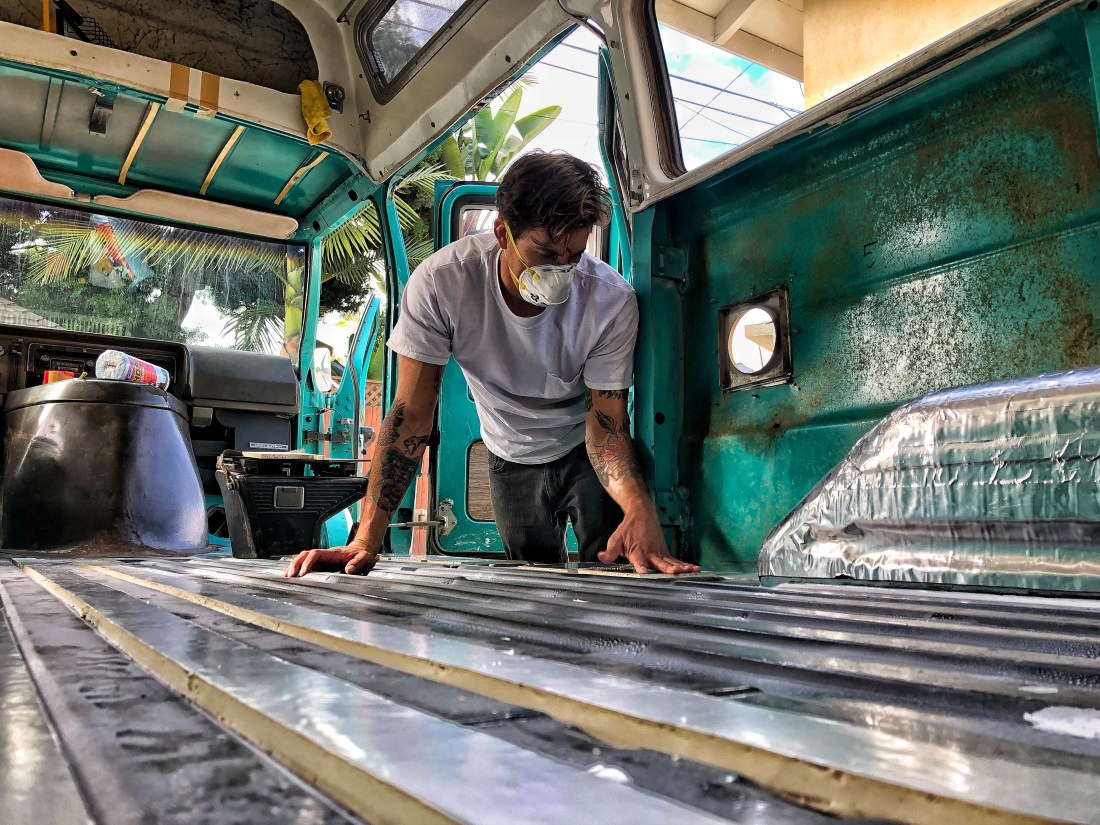 While making strides on the rebuild, we’ve also been acquiring living goodies for este viaje…el interior y la cocina…