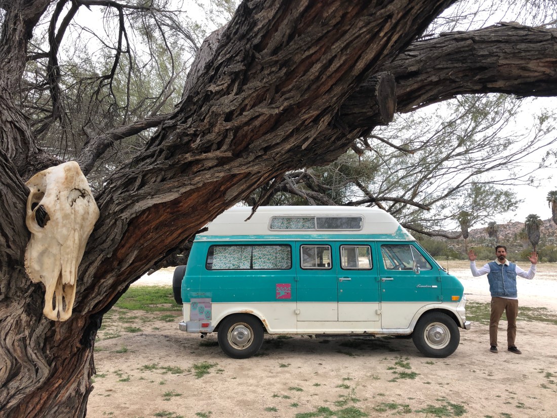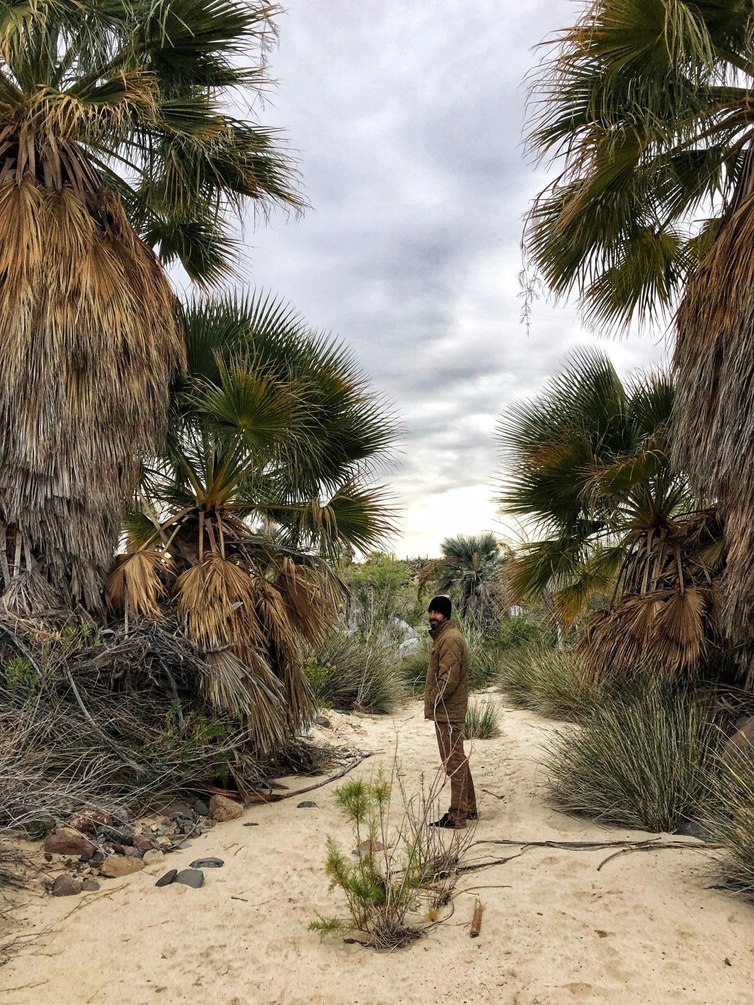 We were welcomed at Rancho Santa Inès. There are a few campgrounds/RV parks in the area, but this one was the BEST. Just a short drive off the highway, offering spacious sites near a cool riverbed, and palm tree oasis.