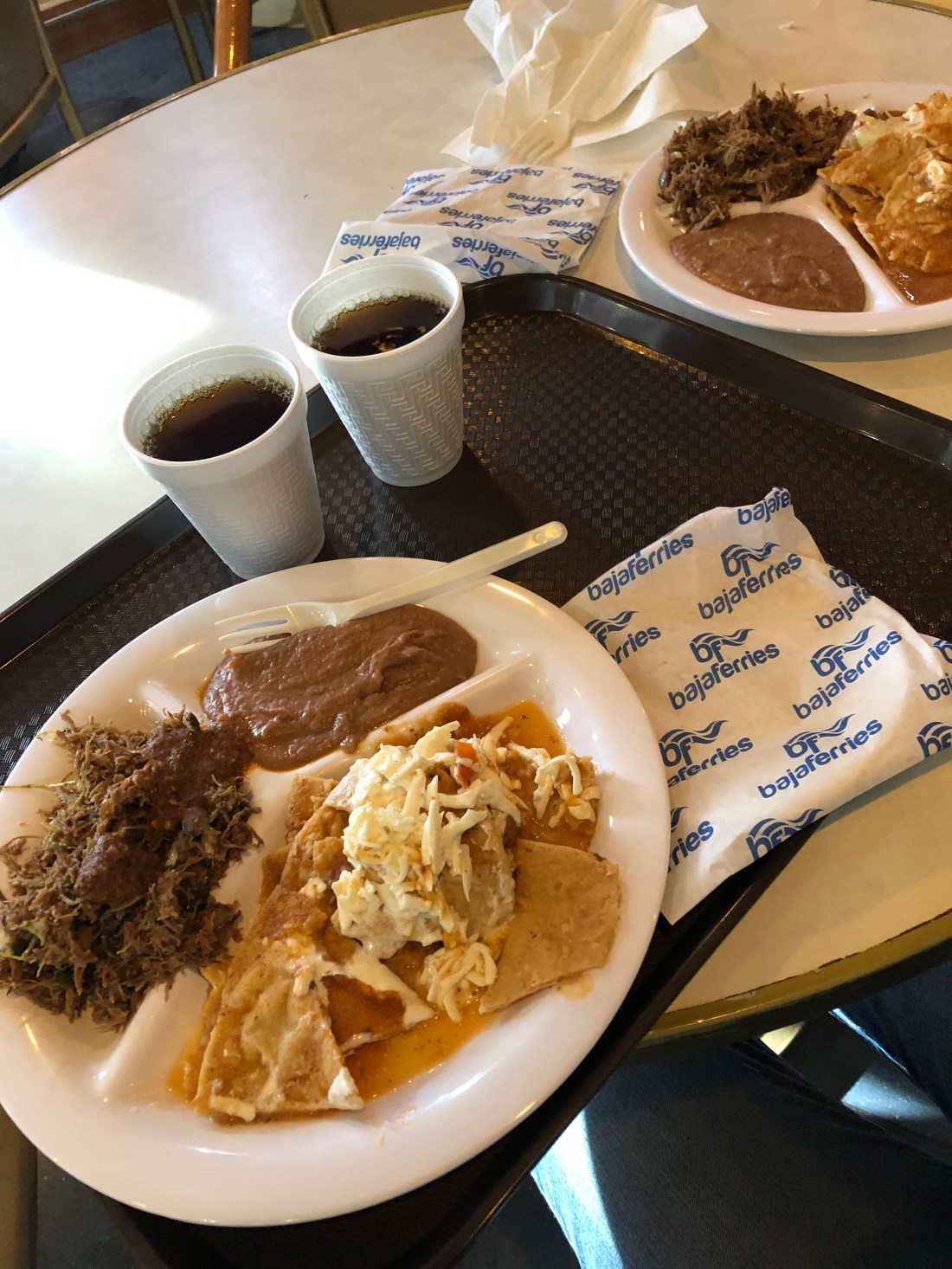 Eventually the borrocho slurs faded away, and our bodies gave way to the fatigue and gentle boat rocking… A blur of tosses and turns, only to be awakened in the morning with a 2+ hour comedy show, coffee, tortillas, machaca and chilaquiles.