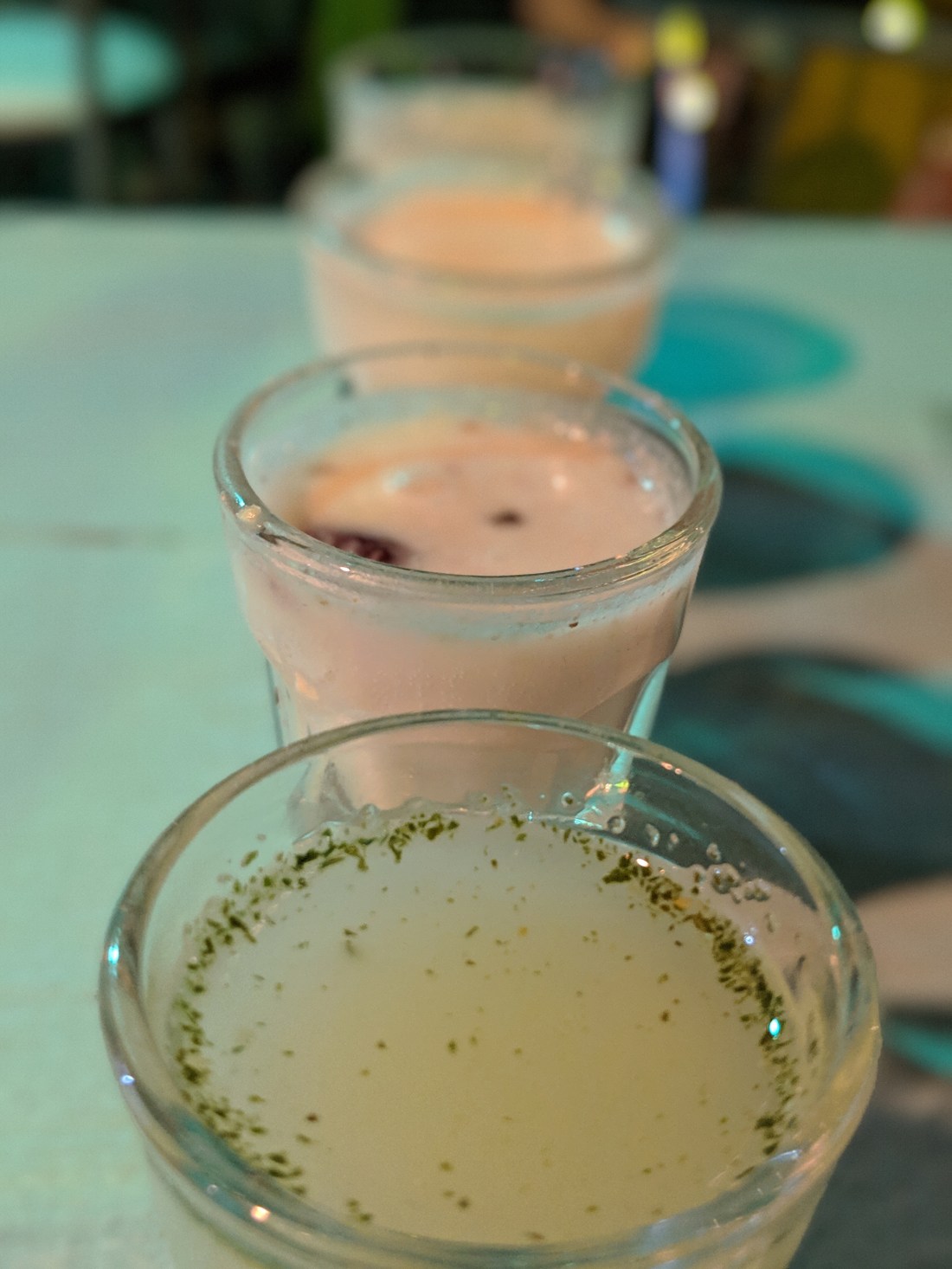 Going back in time with sweet sips of pulque, tequila’s ancestor… Over 2000 yrs old, this delicious and nutritious beverage is made from fermenting the sap of the maguey (agave plant). Pine nut, oats with berry, peanut and mojito flavor flights…