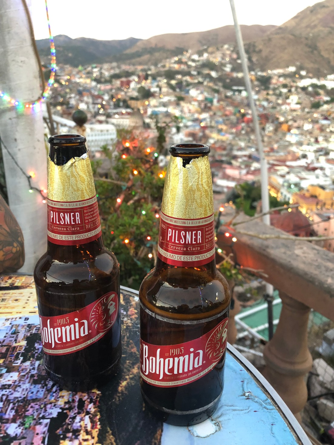 People watching in the plaza over Don Julio sippers. Bacon wrapped perros calientes with the works. (YUM!)