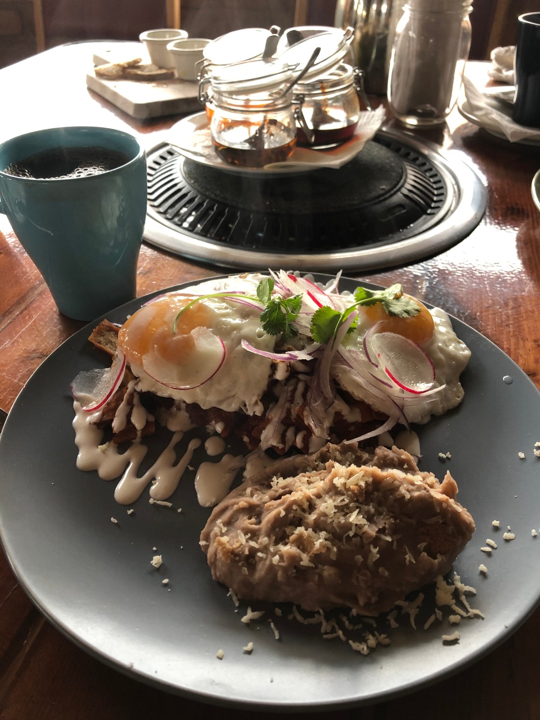 Don Tomas had a gorgeous restaurant (cool construction, open kitchen) that served up the best chilaquiles rojas I’ve ever had, accompanied with fried eggs and house made chili oils. Before we knew it, hours had past over refills of their mouth watering cinnamon coffee.
